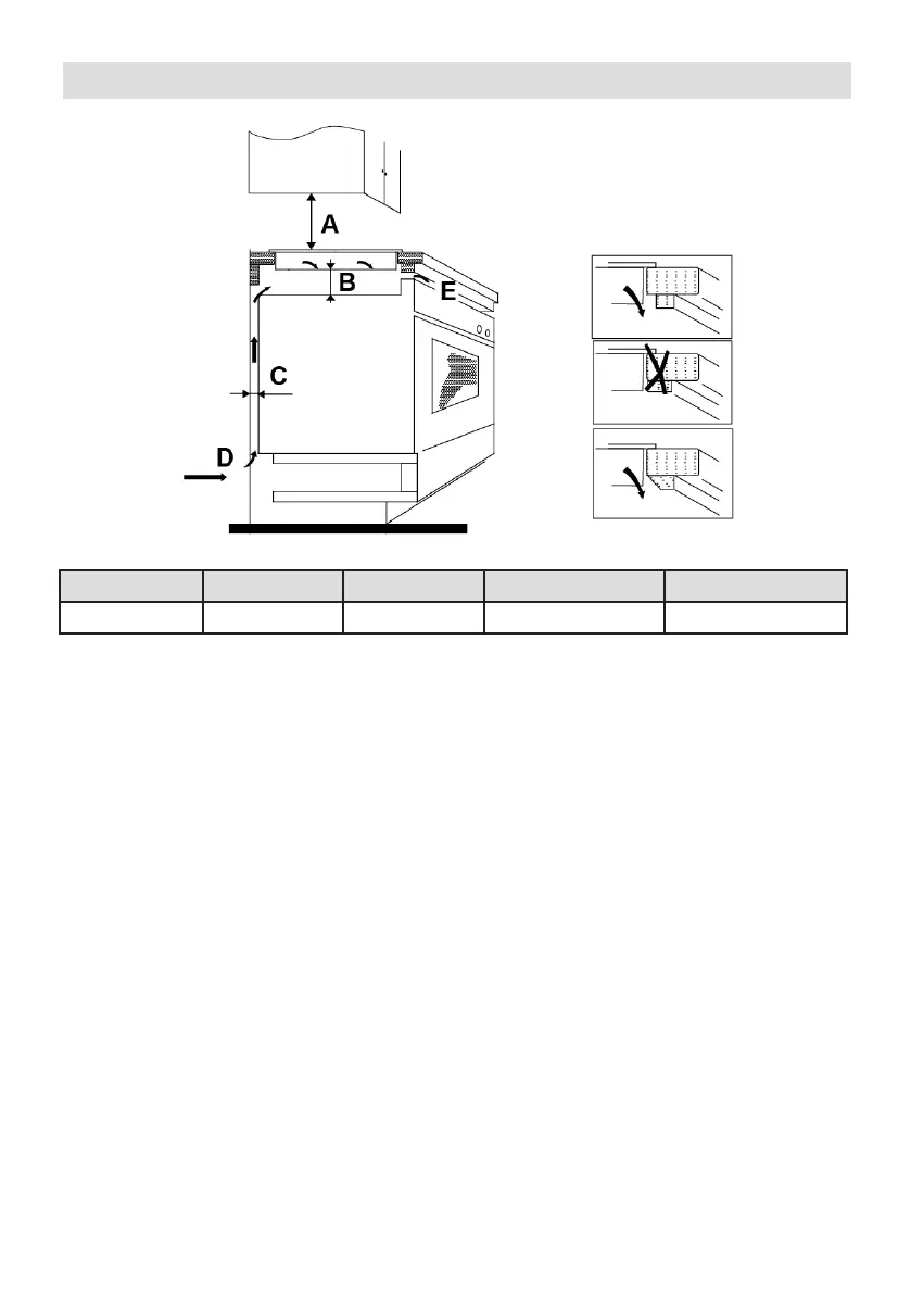 • Si la table de cuisson est installée sur un four, le four doit avoir un ventilateur