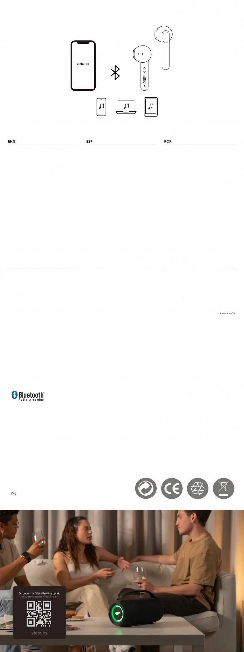 dei cavi e chiudere bene il tappo. Non esporre il prodotto Vieta Pro