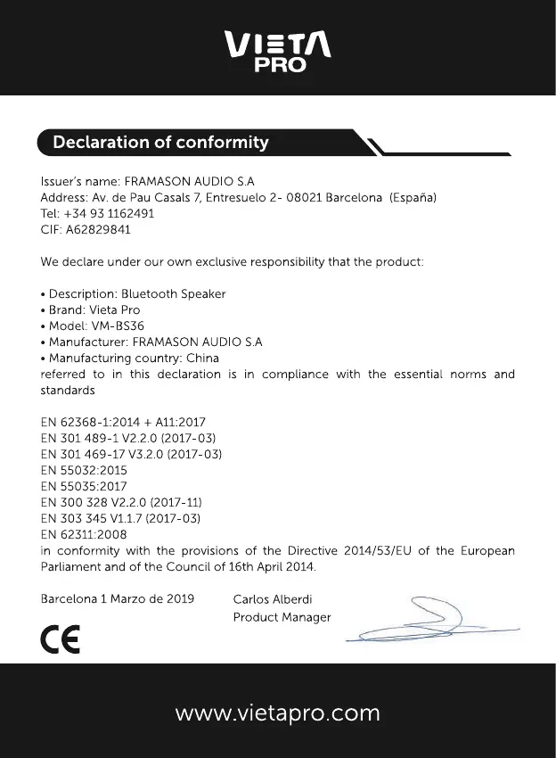 in conformity with the provisions of the Directive 2014/53/ElJ of the European