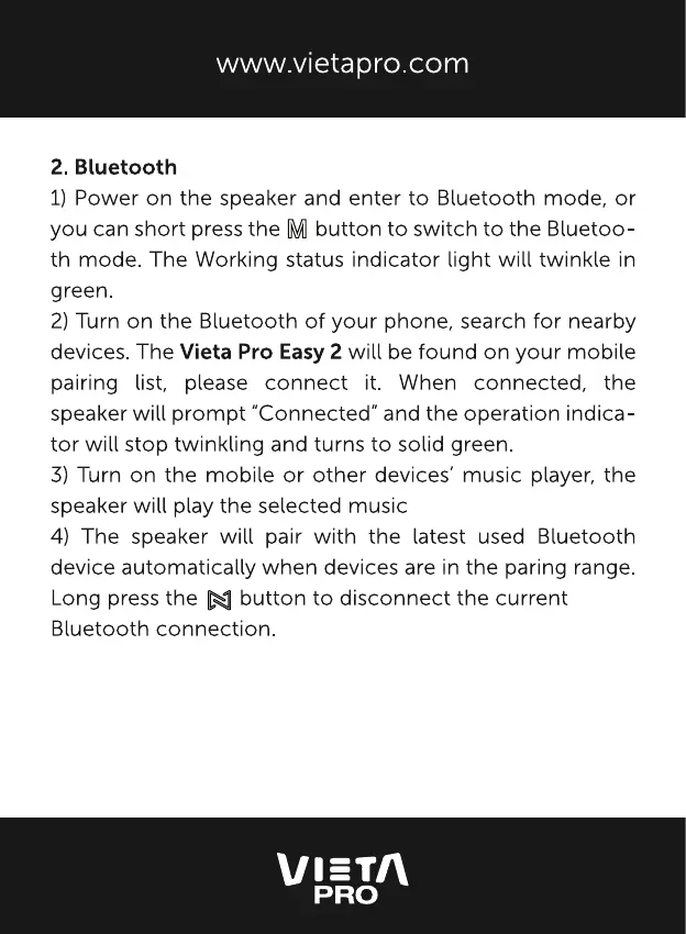 4) The speaker will pair with the latest used Bluetooth