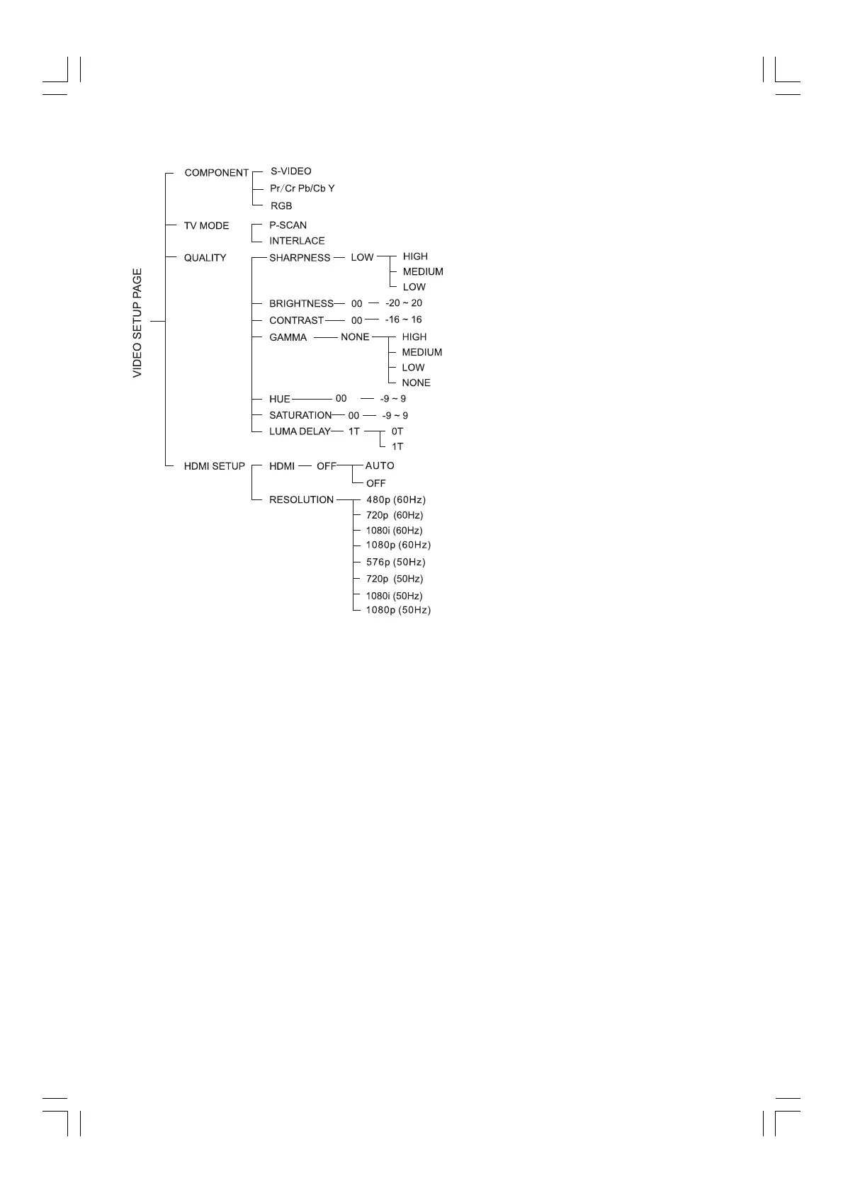 This menu helps you to set the video