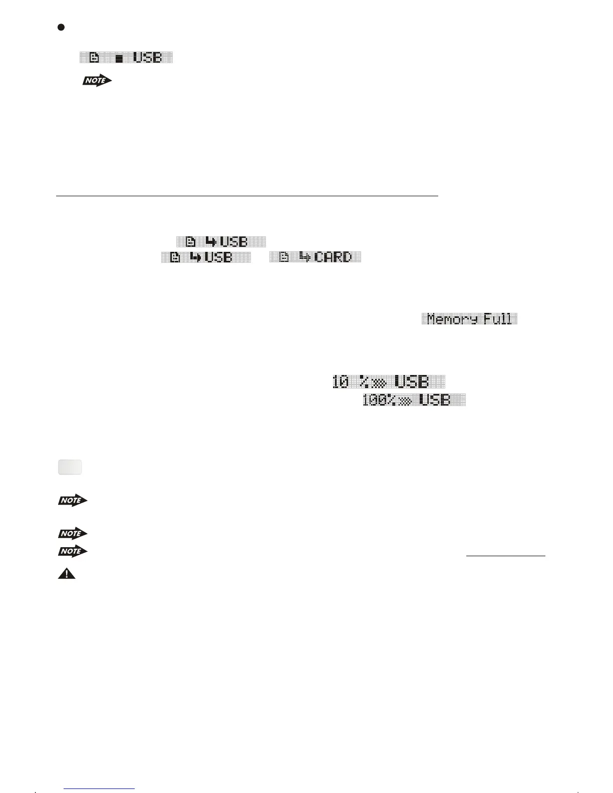 1) Never remove the USB Stick while recording or file transferring to USB Stick. It may damage