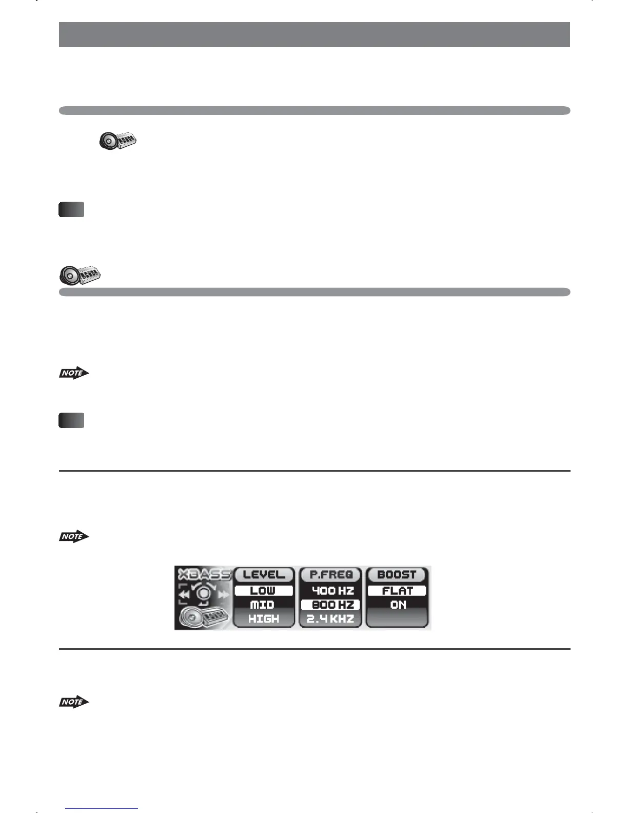 2. P.FREQ: adjust the XBASS peak frequency as 400Hz, 800Hz or 2.4KHz.