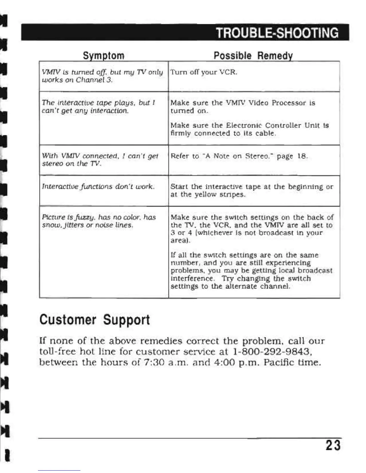 View-Master Interactive Vision - Channel 3 Only Operation; No Interactive Engagement; Stereo Sound Issues; Interactive Functions Not Working