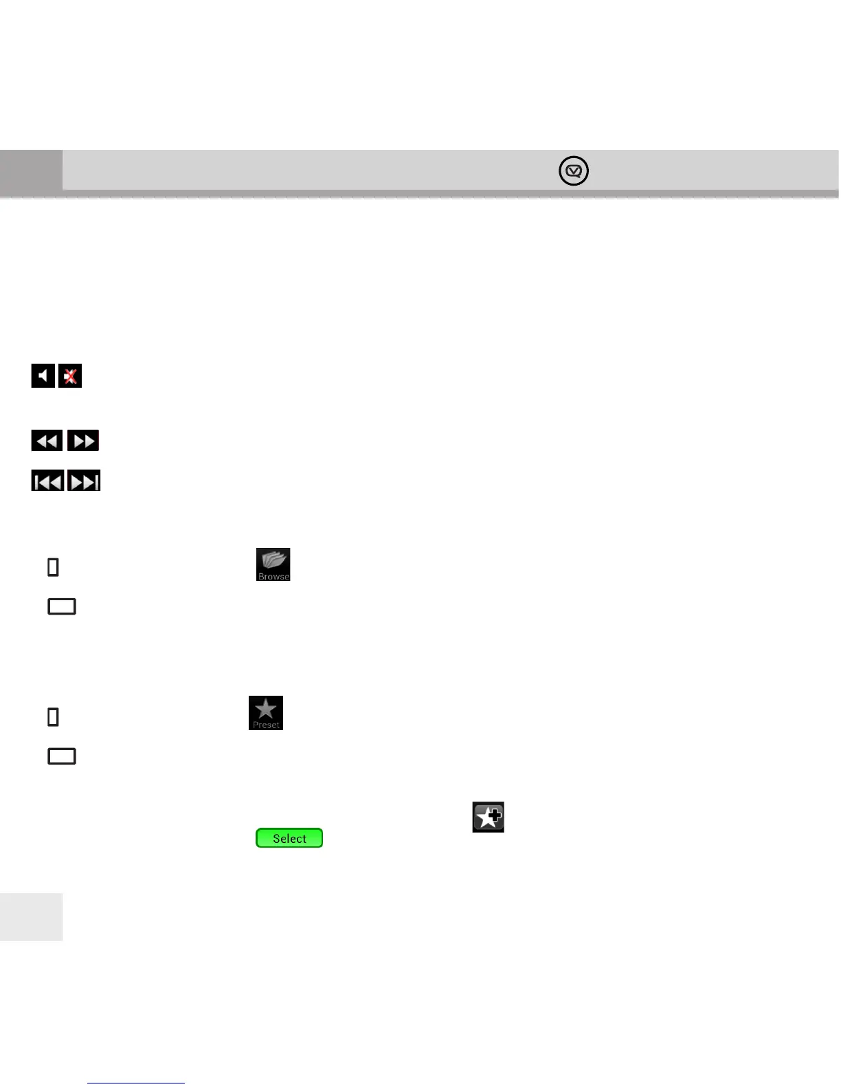The Browse panel for FM displays an analogue tuning knob – rotate it with your nger to tune the FM radio.