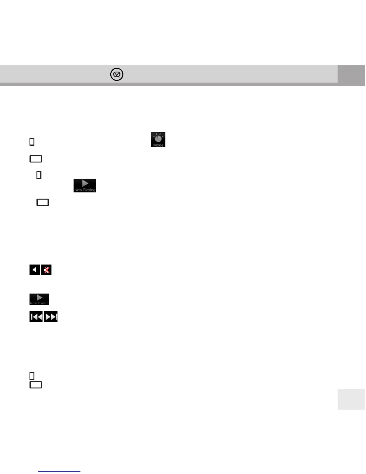 mode: to select AUX In tap Mode [icon] then tap AUX-In.
