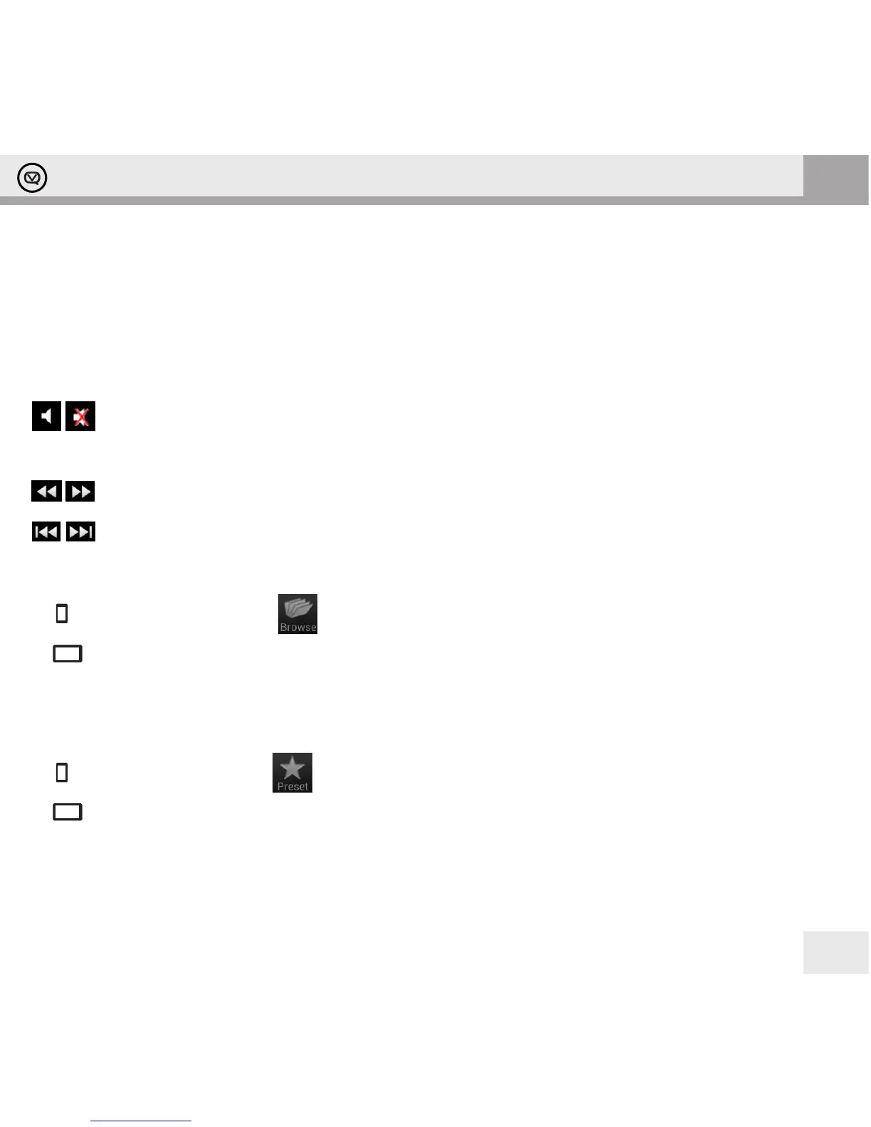The Browse panel for FM displays an analogue tuning knob – rotate it with your nger to tune the FM radio.