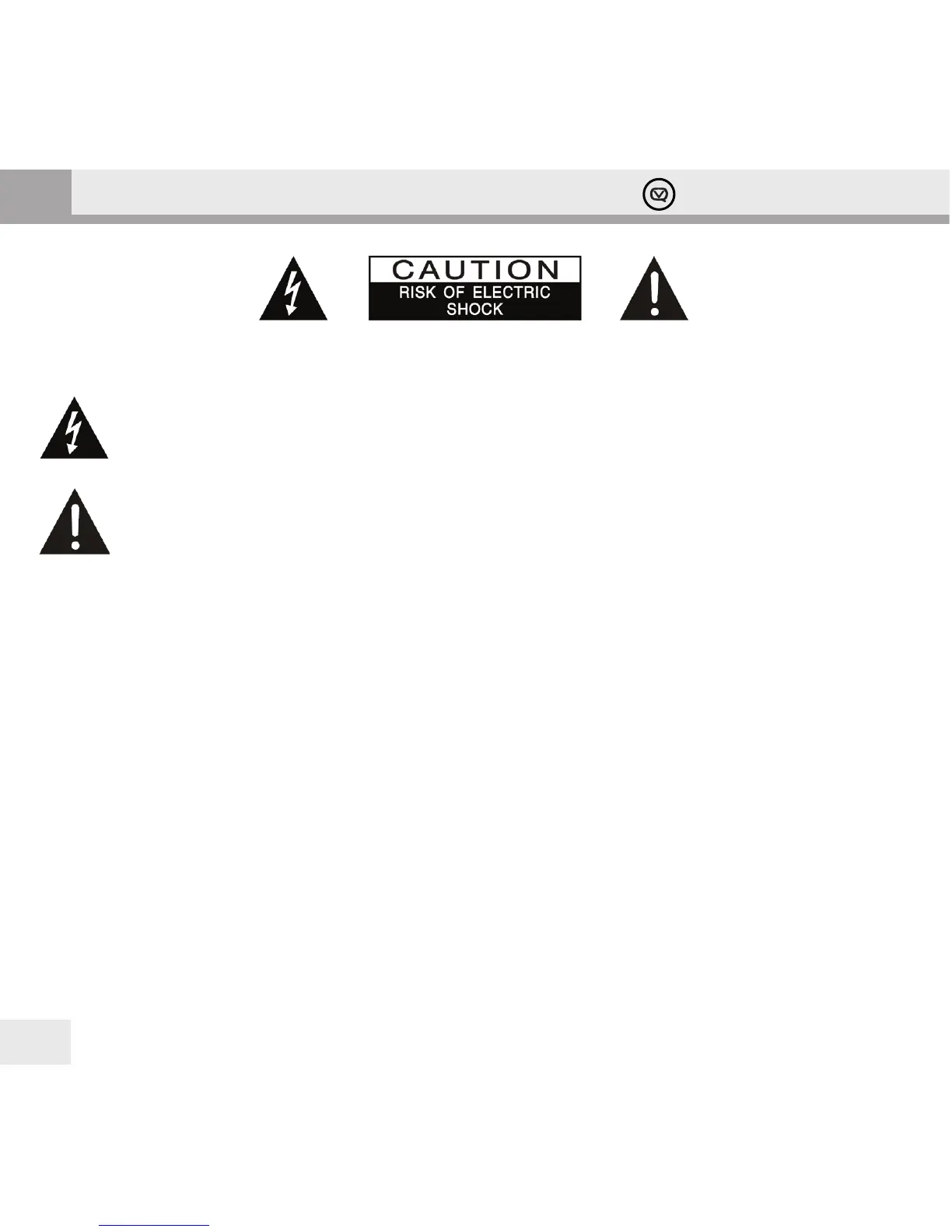 CAUTION: TO REDUCE THE RISK OF ELECTRIC SHOCK DO NOT REMOVE COVER (OR BACK), NO USER SERVICEABLE