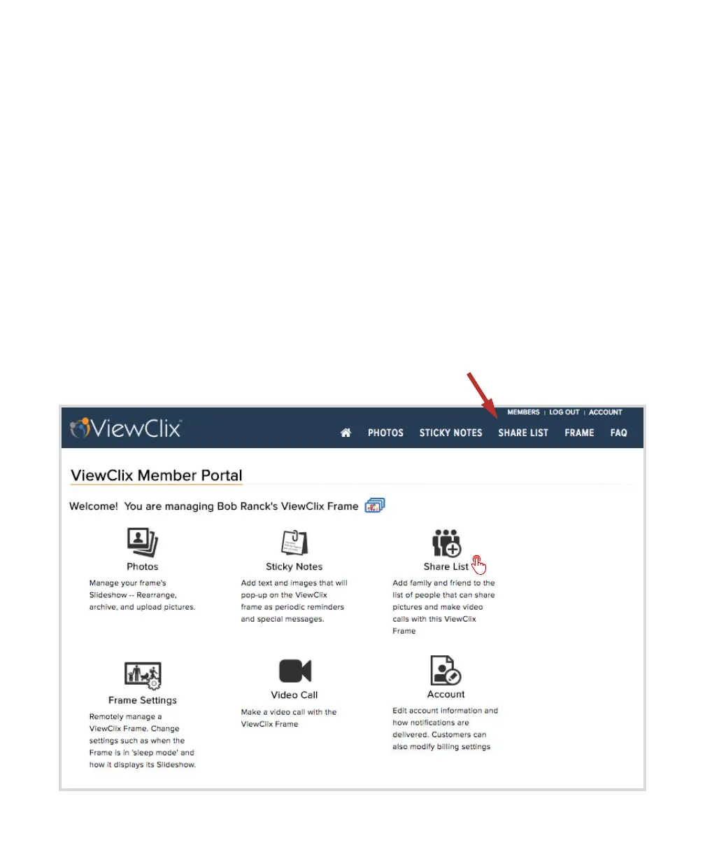 The ViewClix Cloud maintains a Share List for each ViewClix frame. There are 2