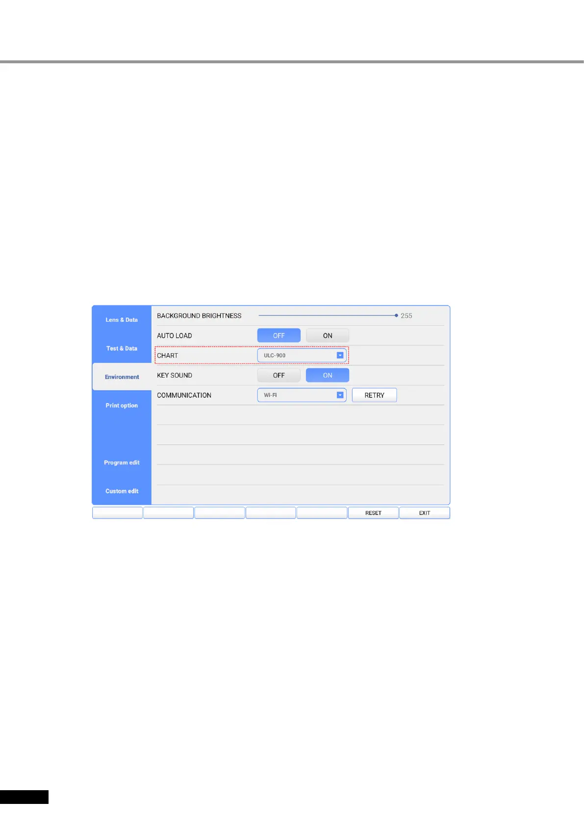 Set up ‘ACP-900’ or ‘ULC-900’ the CHART on Environment page, then touch EXIT.