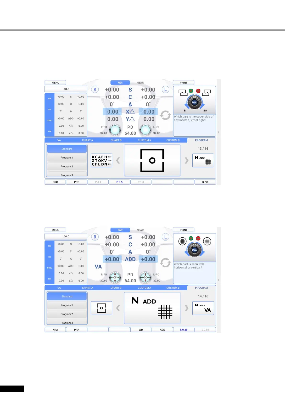 Check the accommodation force on Near Distance Mode by Cross Grid. Add or deduct value of ADD