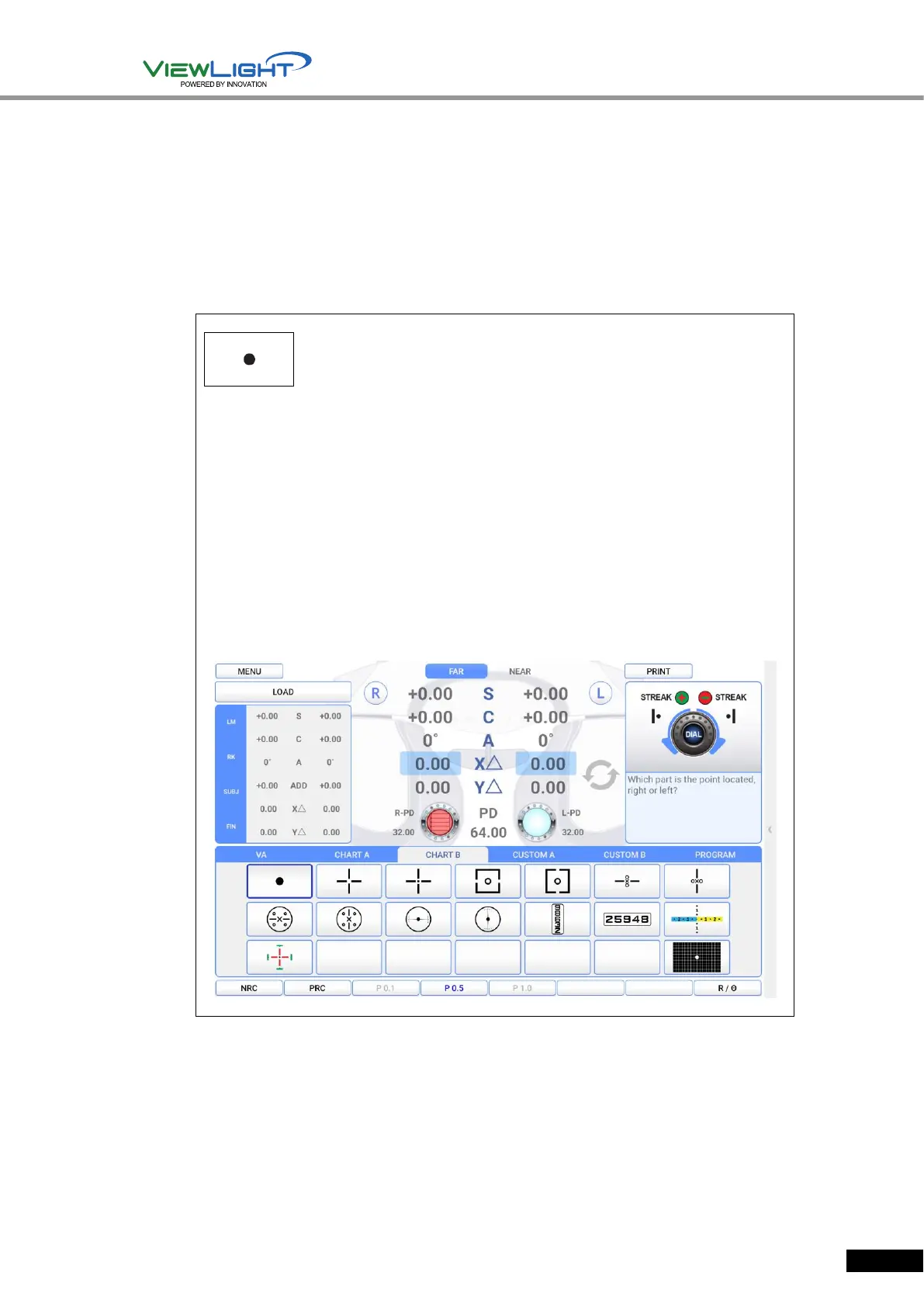 Maddox Rod Test Mode. At this time, a guide and prism change window appear on