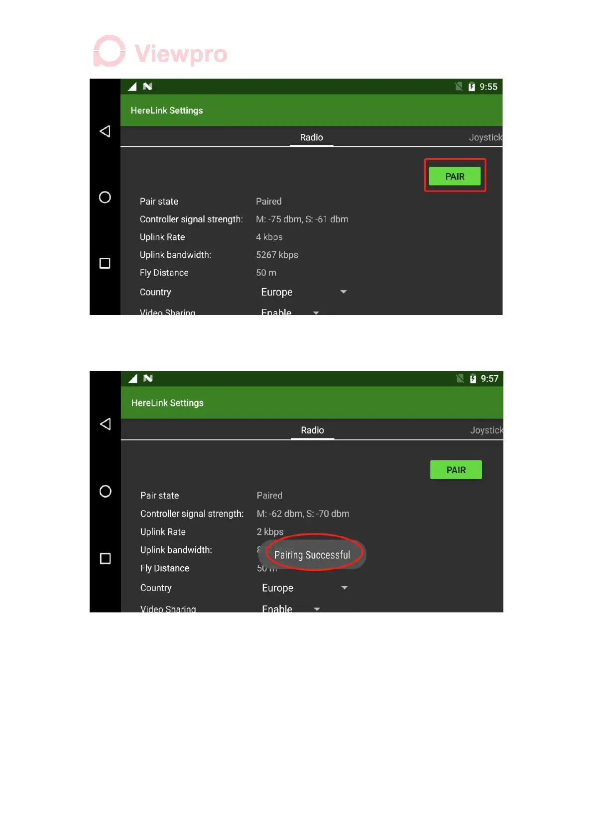 3.1 Slide down the notification bar from the top, click Herelink Settings - Joystick, open