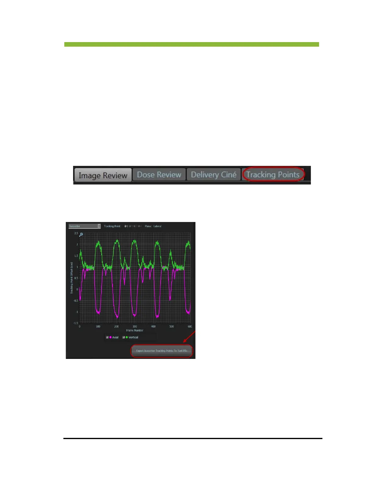 If tracking points were set up in the plan, the results can be viewed during fraction review.