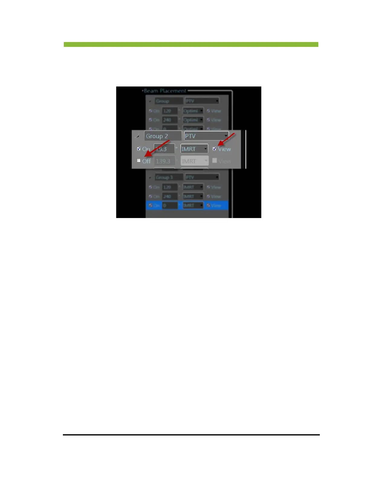 You can turn off individual beams by clicking in the check box next to the beam. Checking