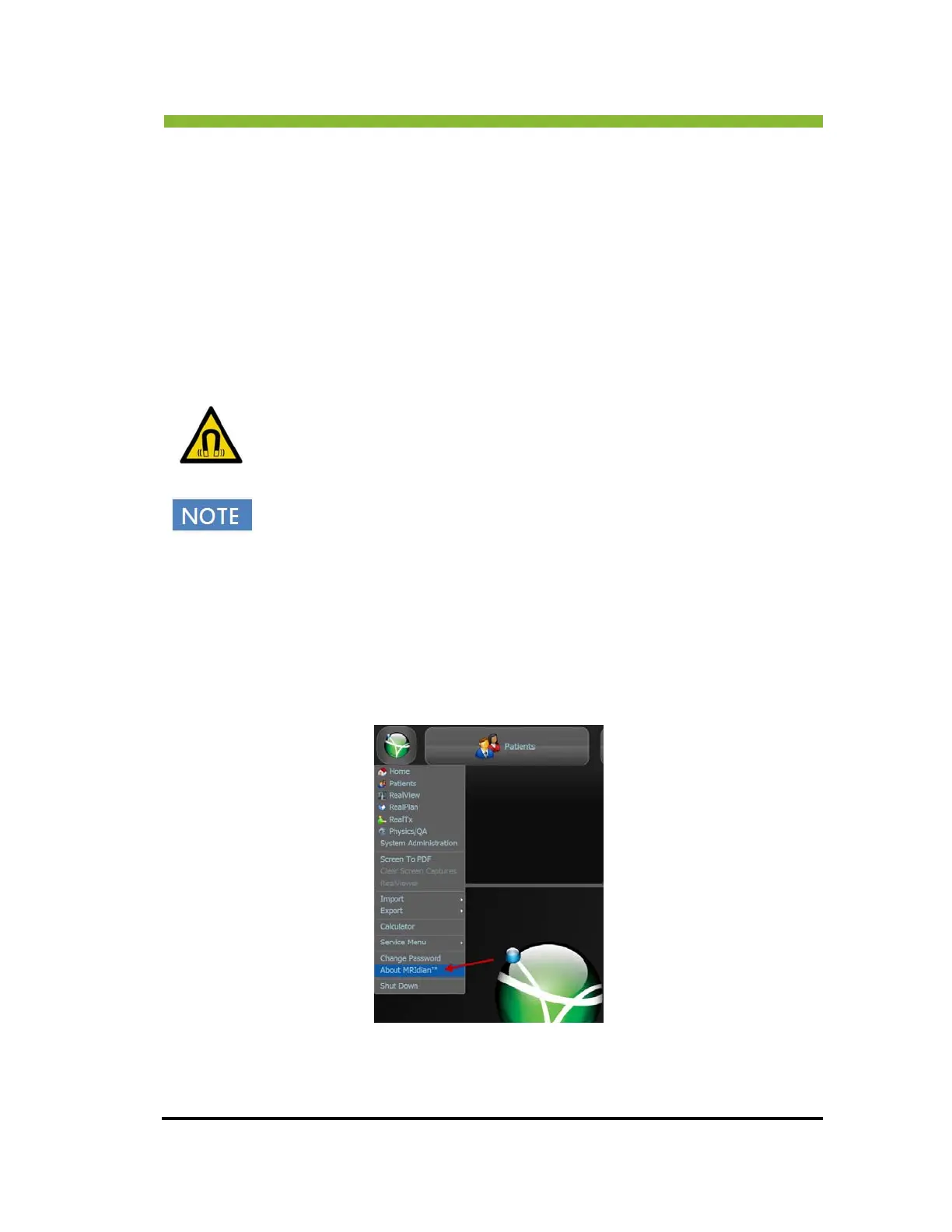 To find the software version your system is running Click > the MRIdian icon and a dropdown