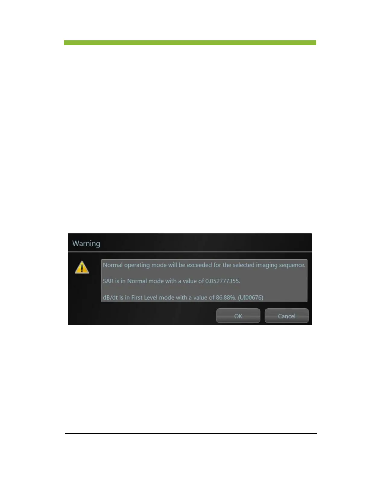First Controlled Mode for dB/dt. The operator is required to acknowledge this warning before