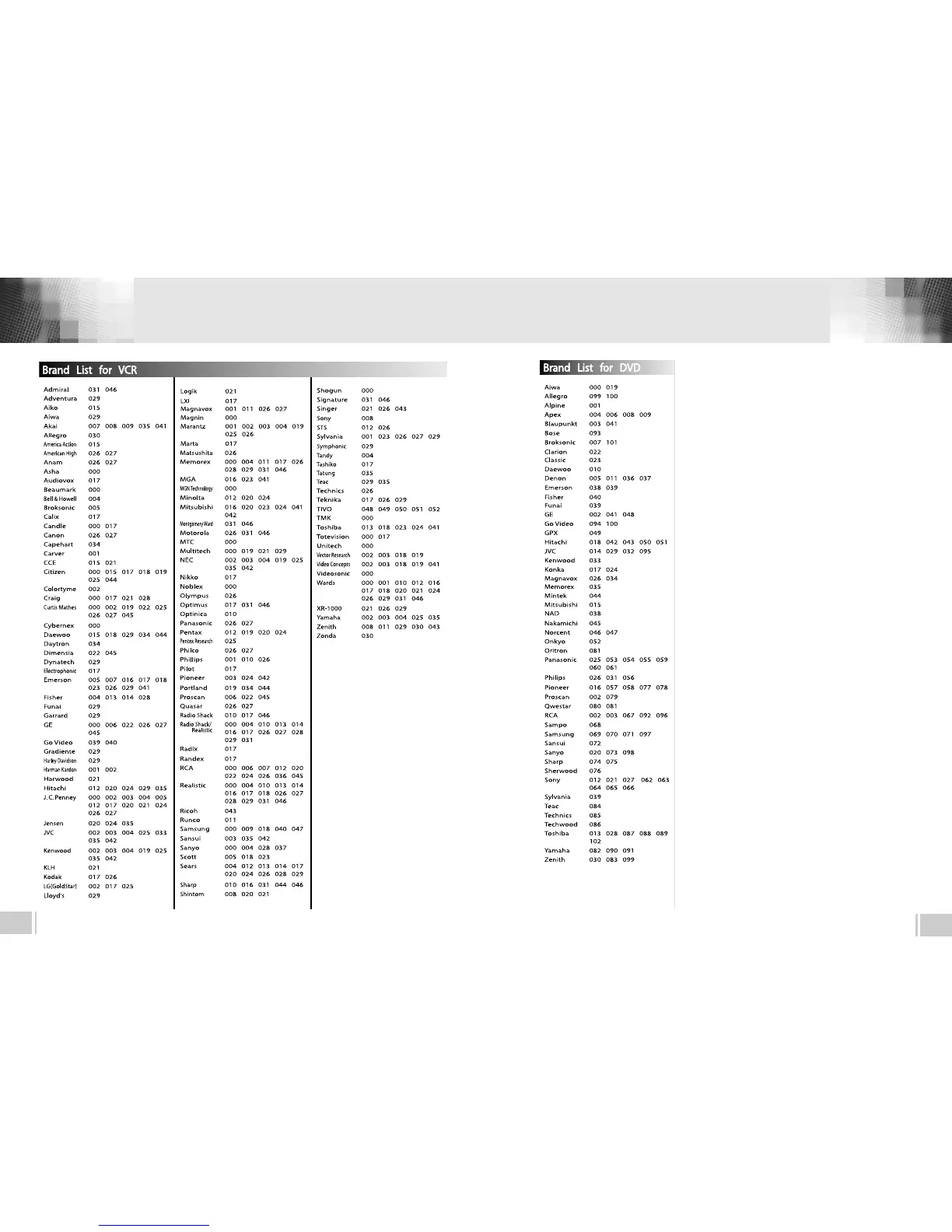 Brand List for TV