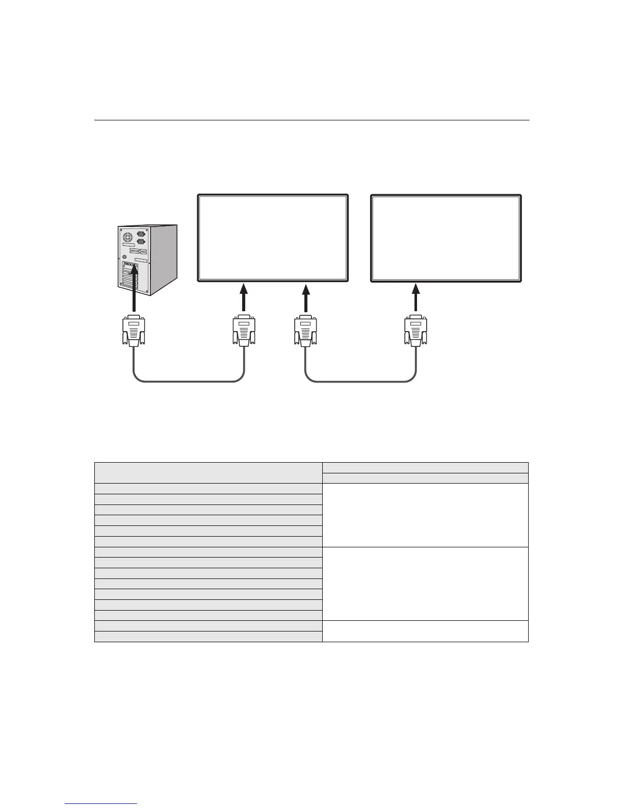 • When connecting multiple monitors in a daisy-chain configuration, please refer to the table below for