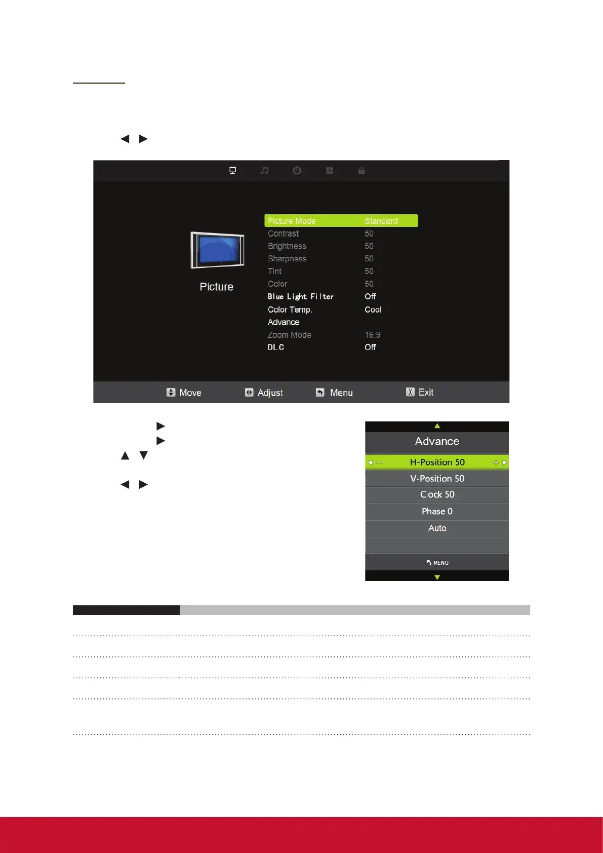 H-POS Adjust the horizontal position of the picture.