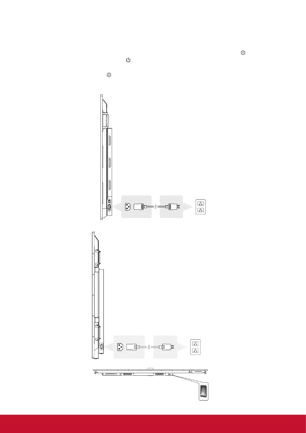 Insert the power plug into the power outlet. First turn on the On/Off button “ ” on the