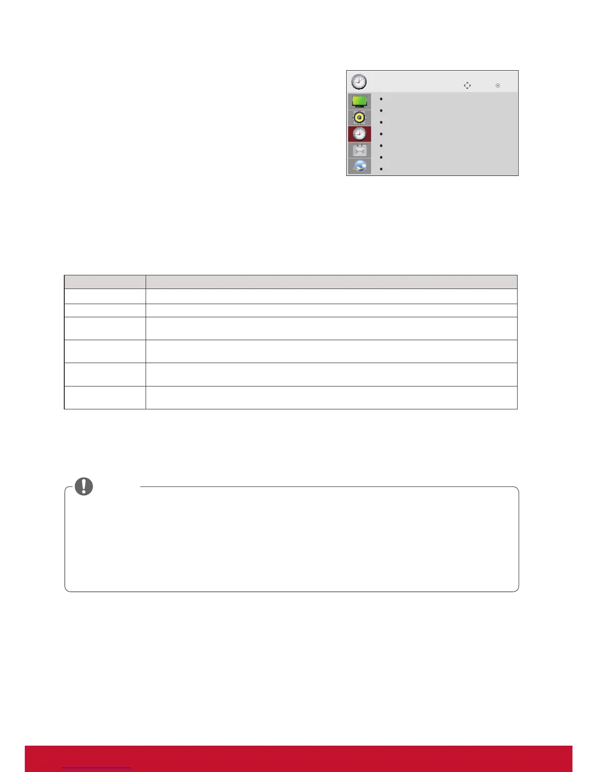 Off/On Time Sets the time to turn on or off the Monitor.