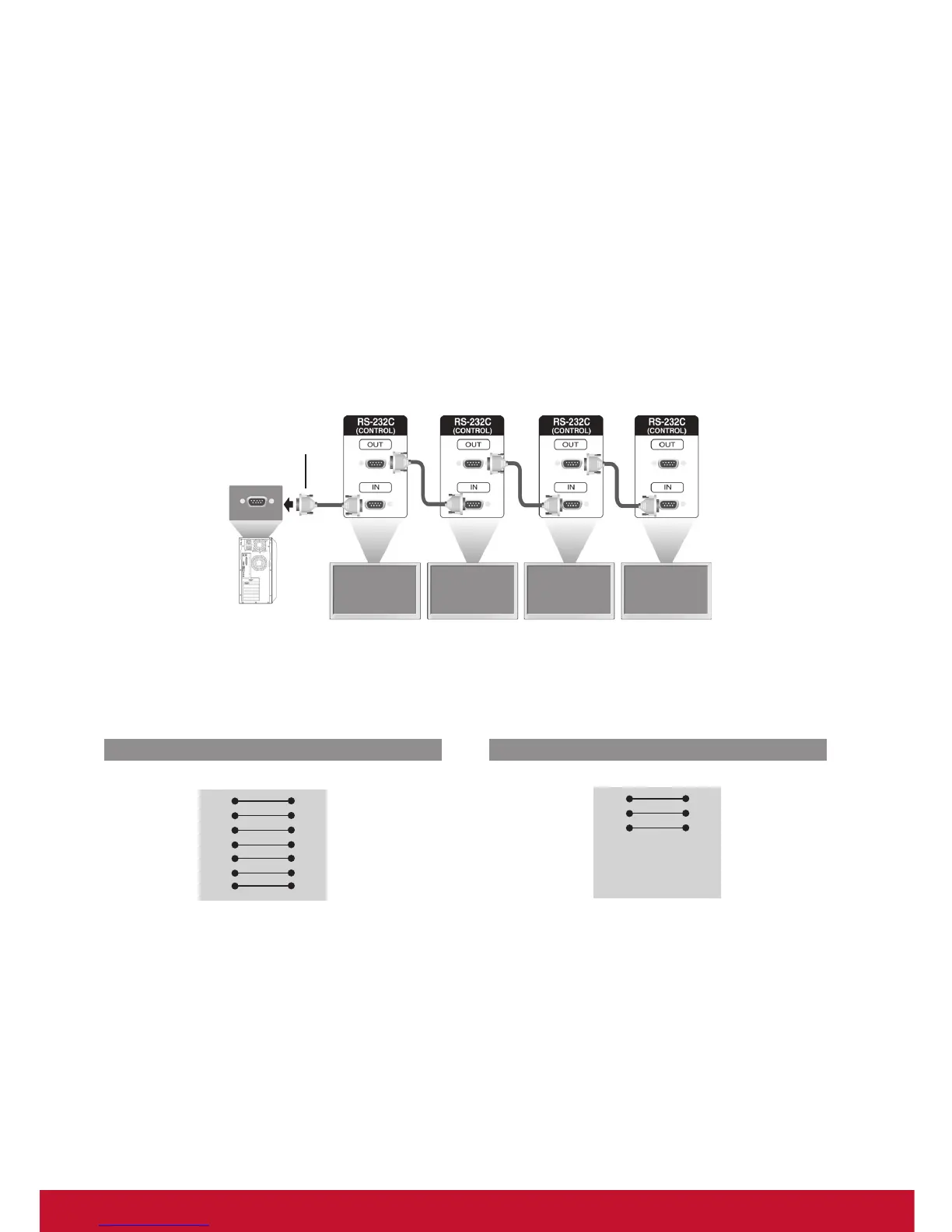 The RS-232C protocol is used for communication between the PC and product. You can turn the