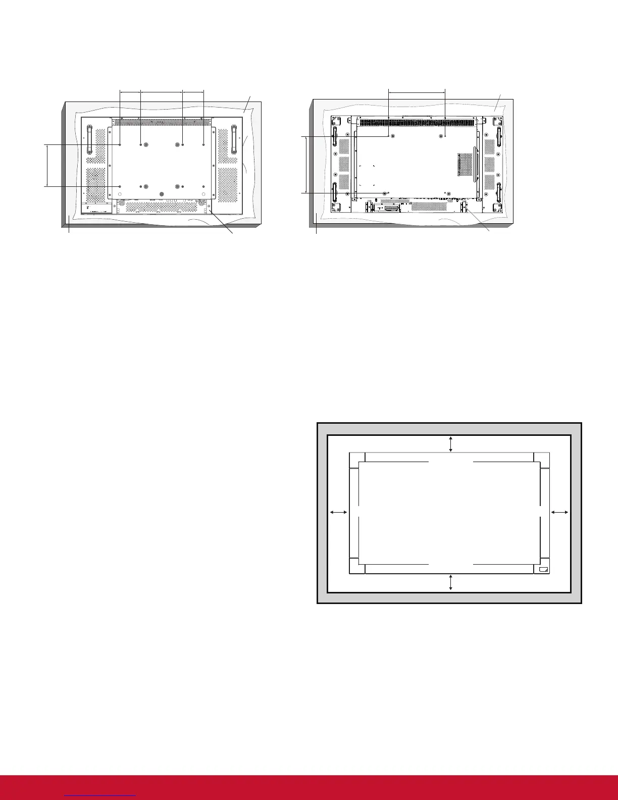 •  For wall or ceiling installation, we recommend installing the display with metal brackets which are commercially available. For detailed