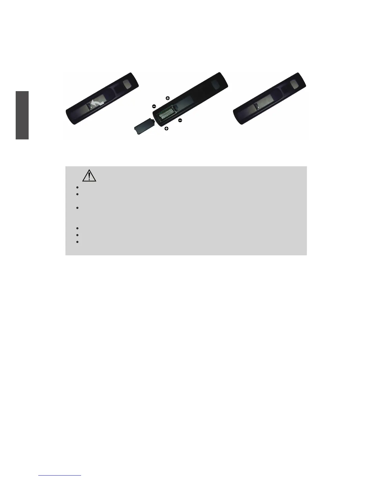 When the remote control will not to be used for an extended period, remove