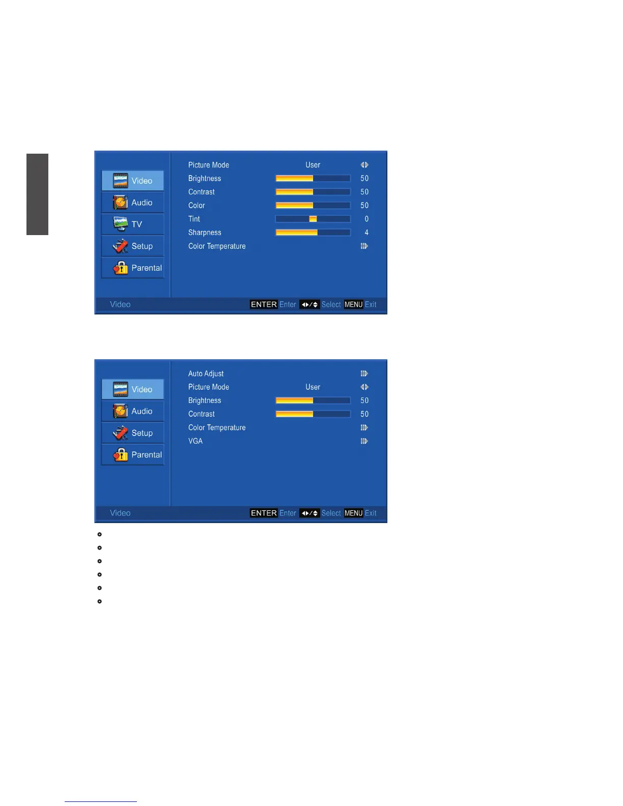 Note: When in AV, S-Video, YPbPr or HDMI source,the TV option on the left does not appear.