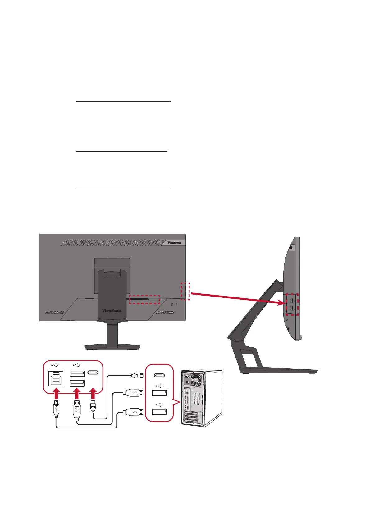 NOTE: The monitor supports three (3) types of USB ports. When making the