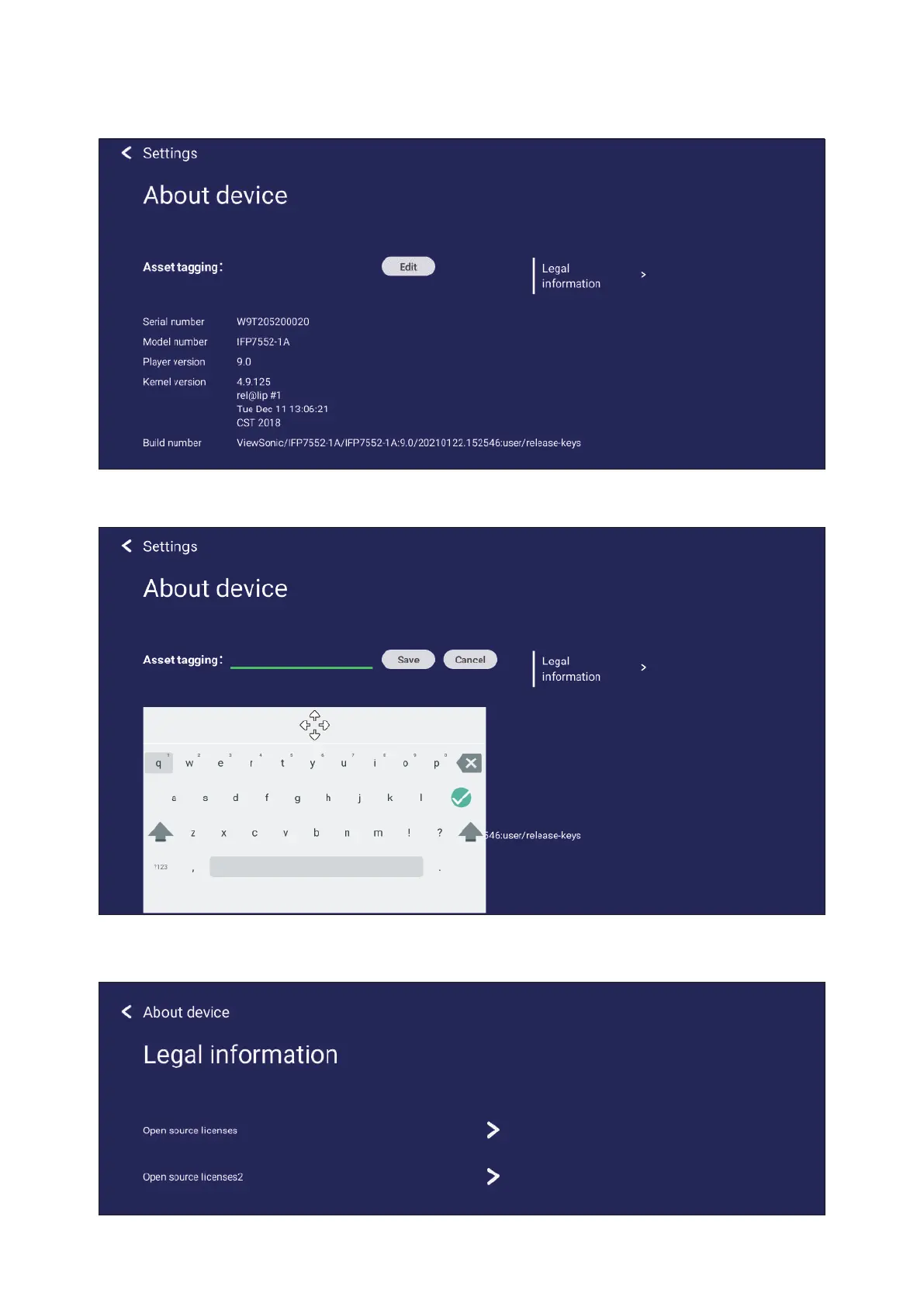 Display Embedded Player informaon, Legal informaon, and Asset Tagging.