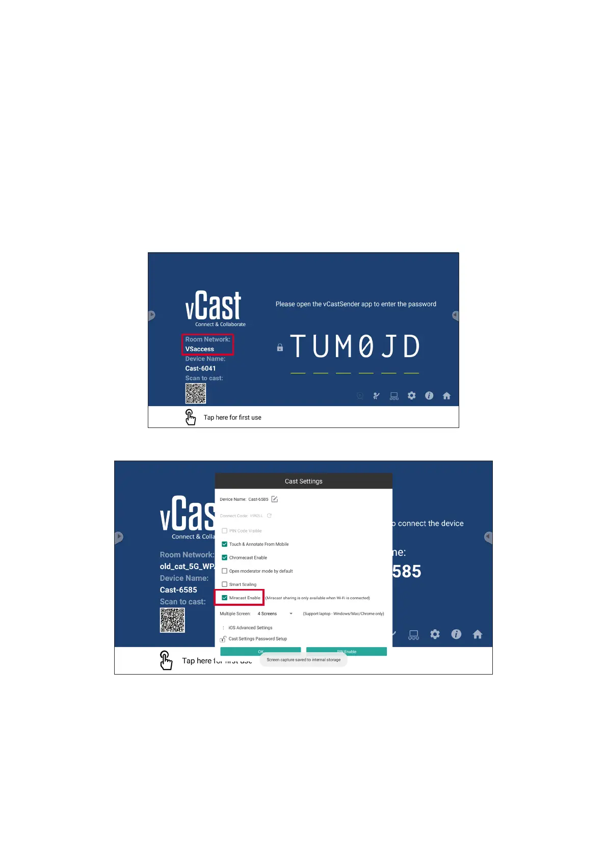 2. Ensure the Miracast Enable checkbox is selected in the vCast sengs.