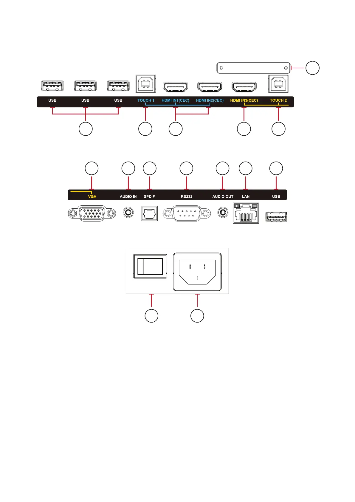 TOUCH, HDMI, and VGA are grouped by color; i.e. TOUCH 1 should be used
