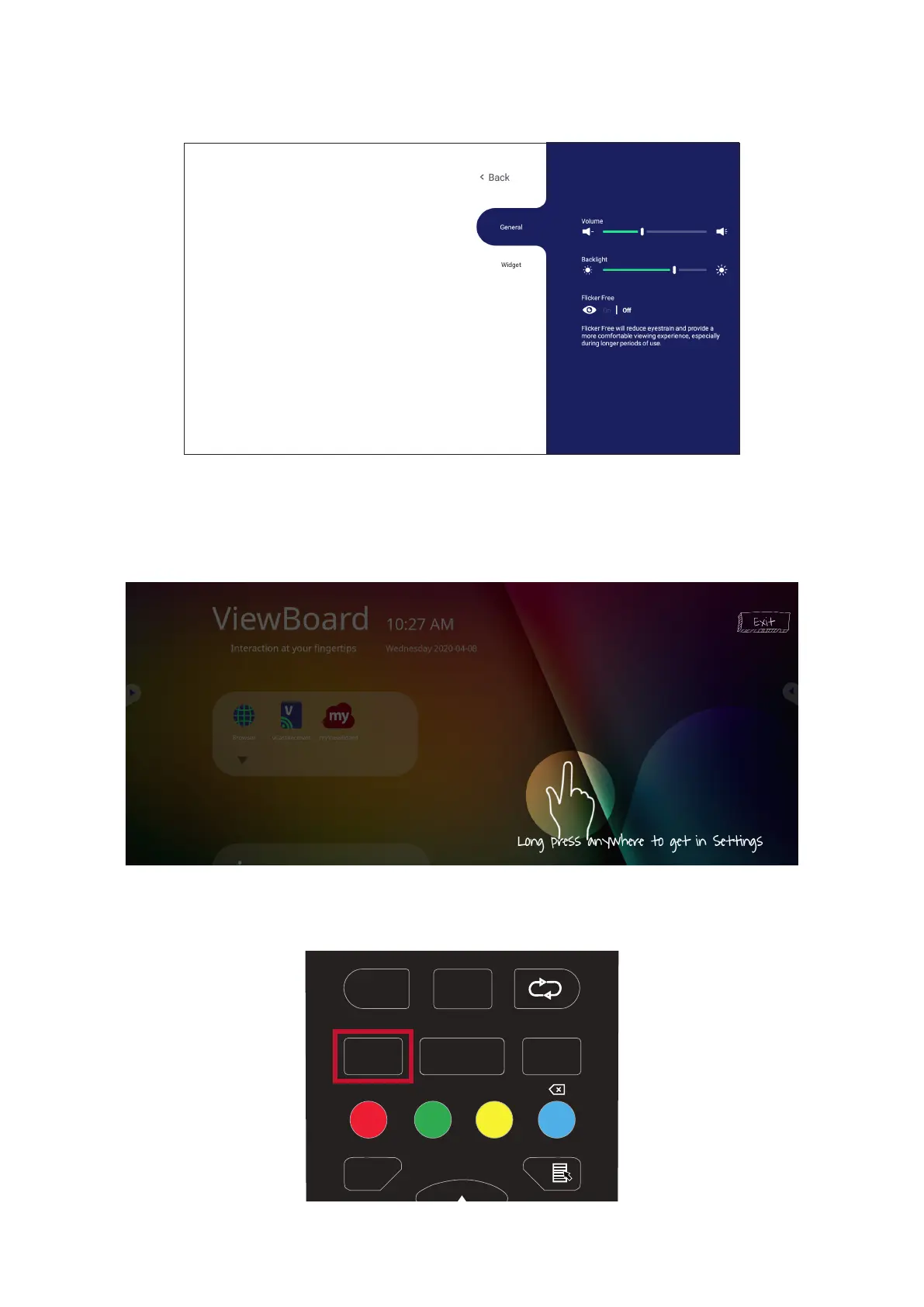 Access General Sengs, Input Sengs, and Widgets through the OSD Menu.