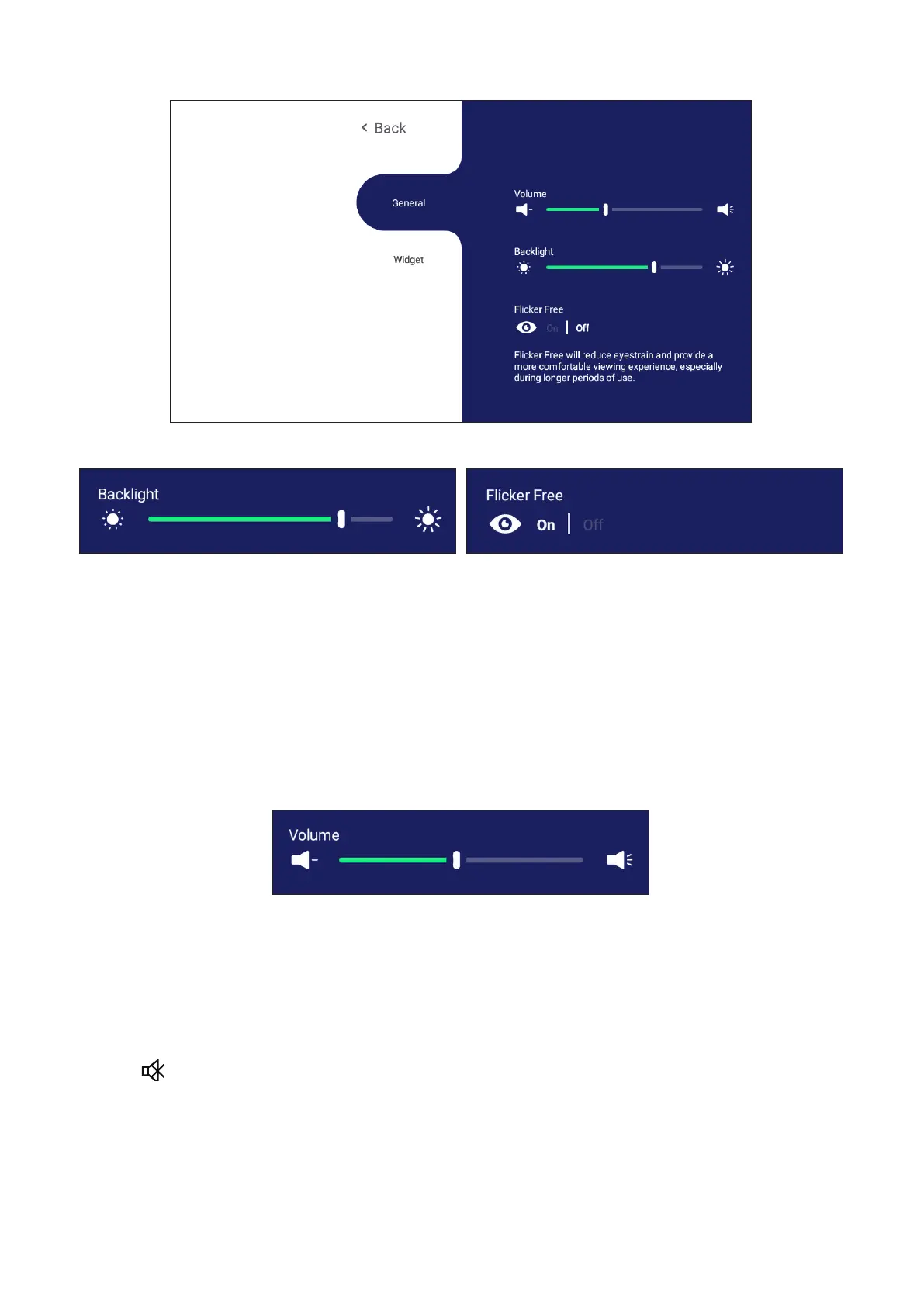 To adjust the Backlight and enable/disable Flicker Free:
