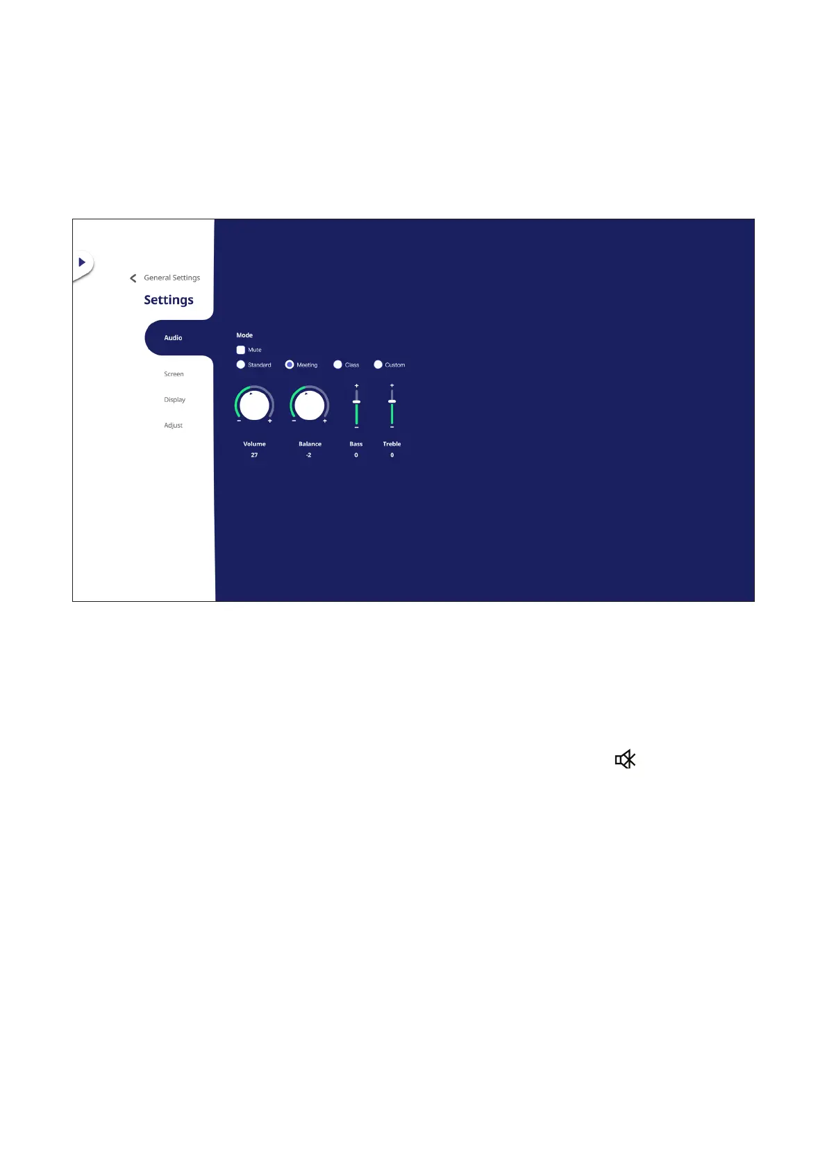 4. Touch the Mute slider directly to enable/disable mute, or press (Mute) on the