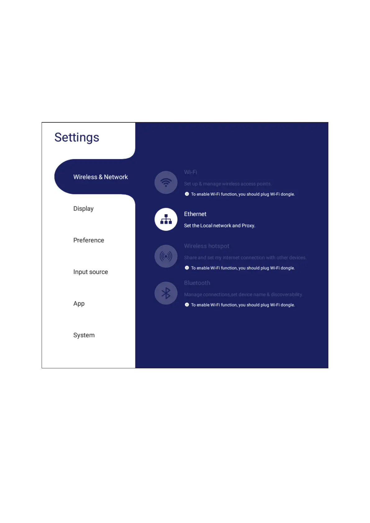 • Ethernet will disable automatically when Wi-Fi is enabled. Wi-Fi will disable