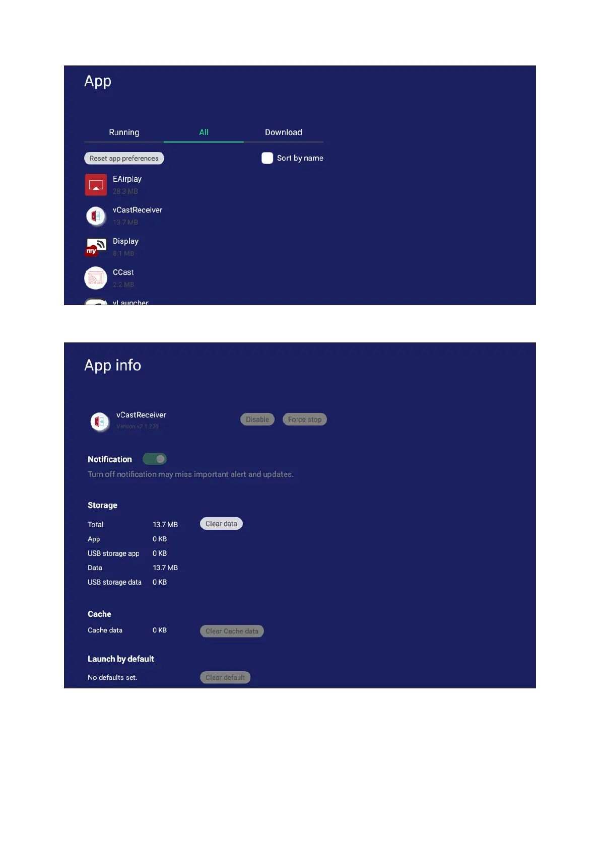 Selecng All, Download, or USB storage will list all installed applicaons.