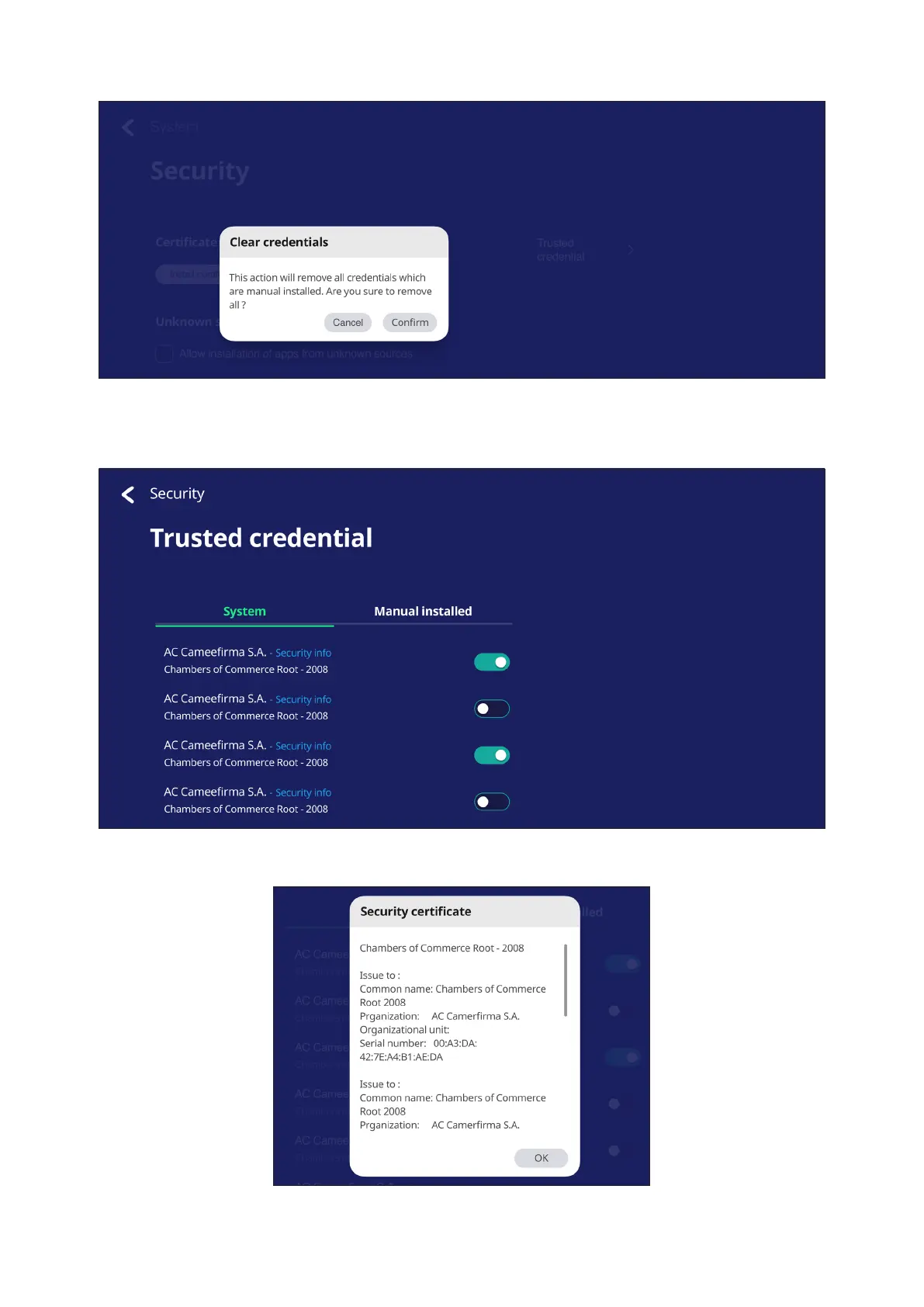 Selecng Clear Credenals will remove all manually installed credenals.