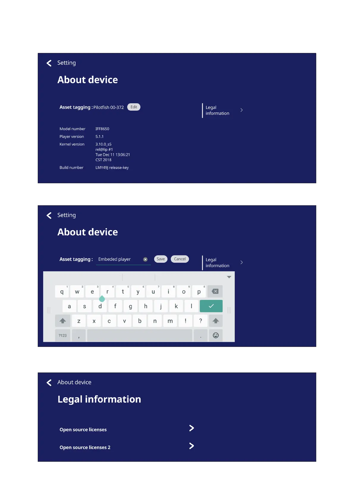 Tap on Legal informaon to check open source licenses.