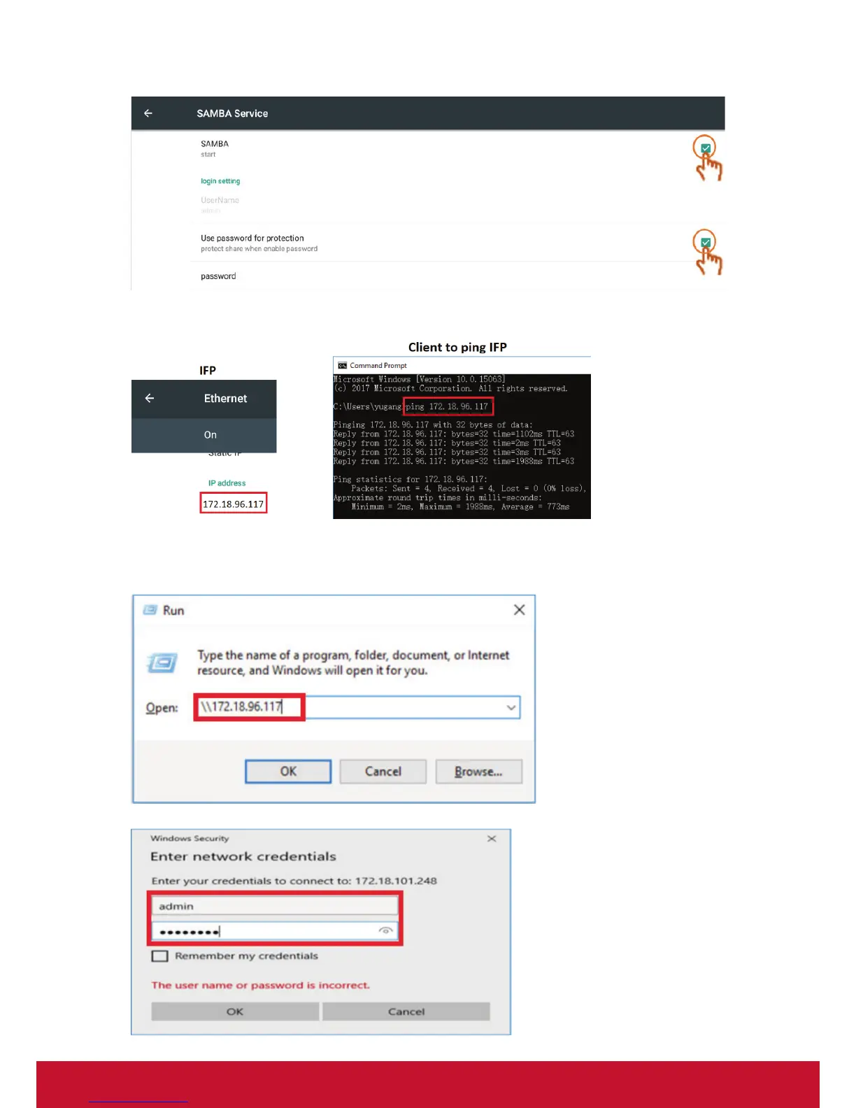 Login the IFP with the client equipment, Windows PC for example. Input the IFP IP