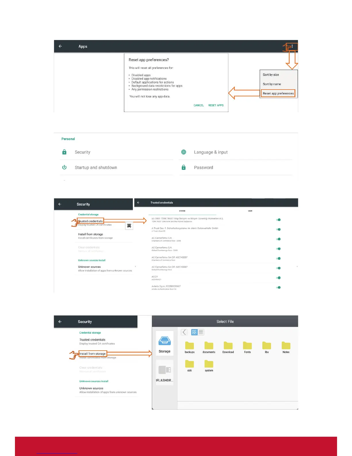 Install from storage: Click to install needed credentials from internal storage or