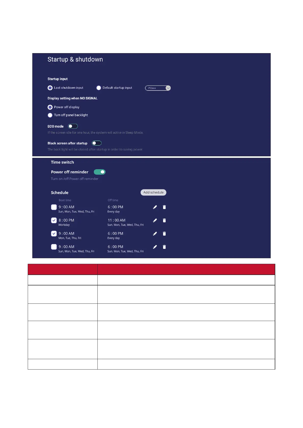 Set the Startup Input, Standby Mode, EnergyStar Mode, Black Screen Aer