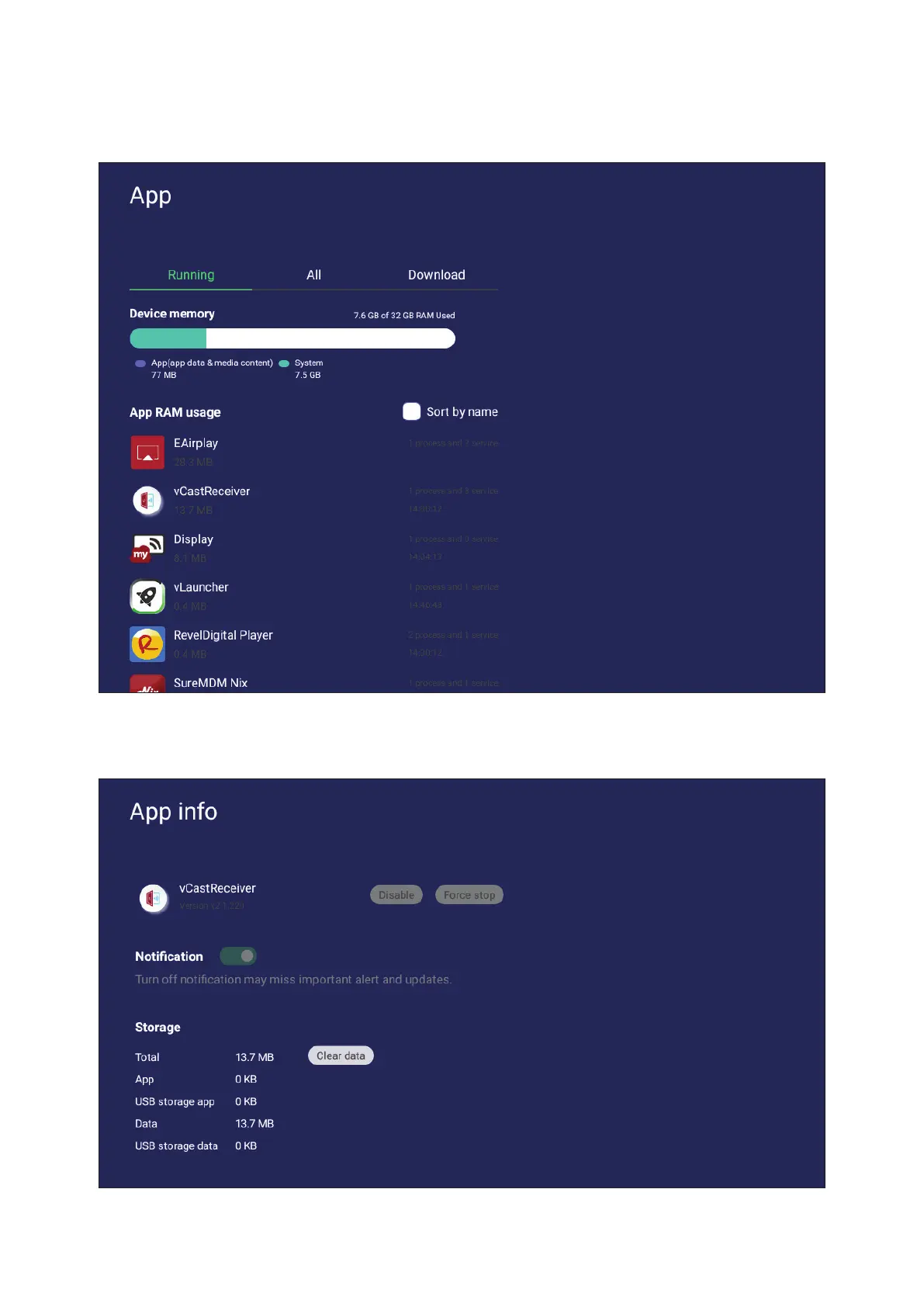 View any running or installed applicaons. Tap on them for more detailed