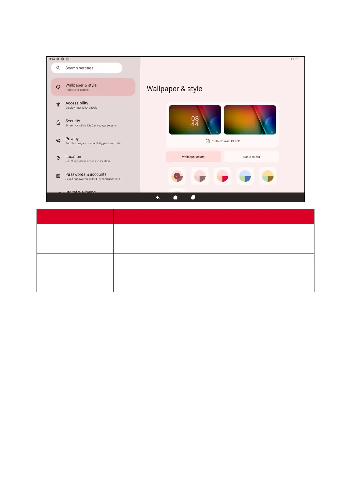Adjust and personalize the Wallpaper, Colors and theme of the ViewBoard.