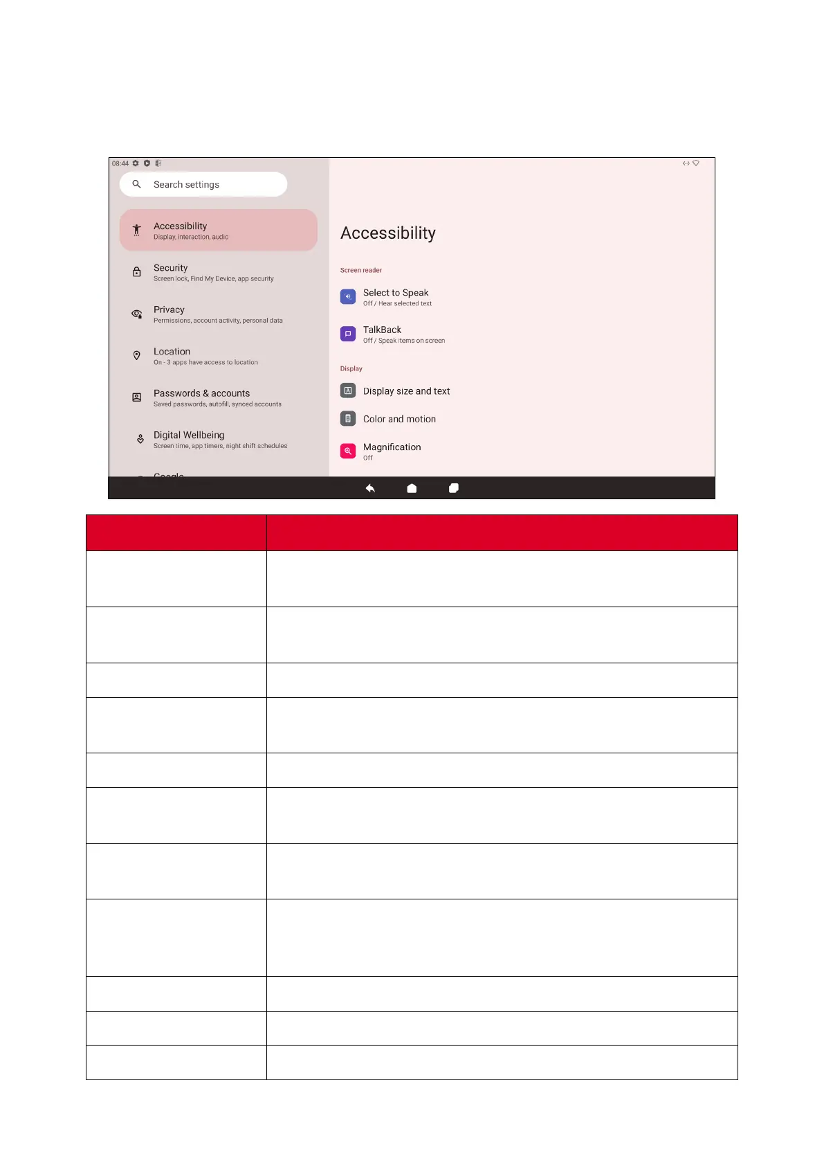 View and adjust various tools that can help people with visual, auditory, speech, or
