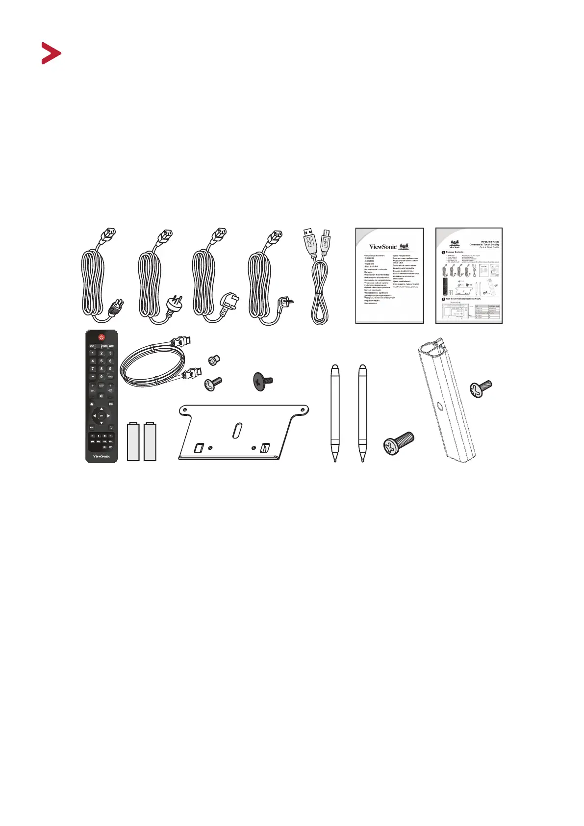 • USB touch cable • Pen Tray and screws