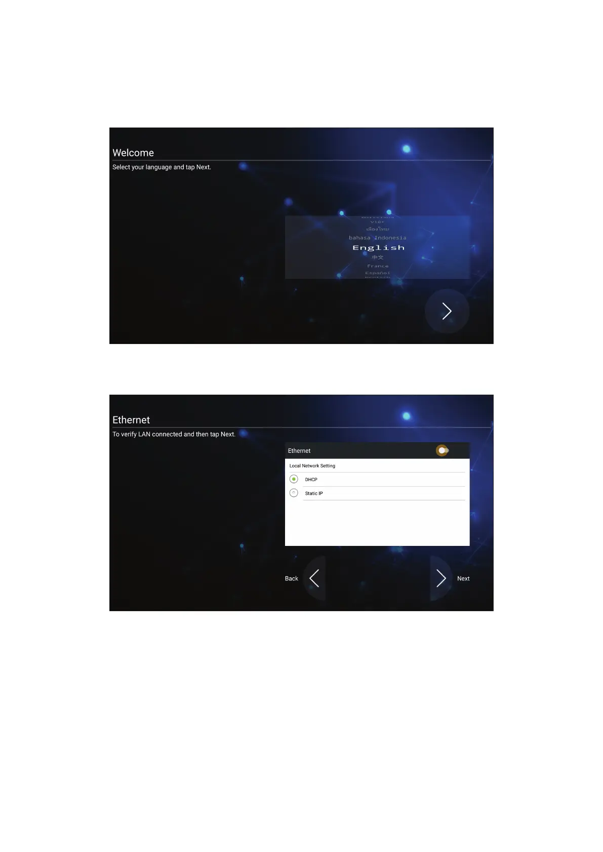 When you rst turn on your ViewBoard, an inial setup wizard will launch.