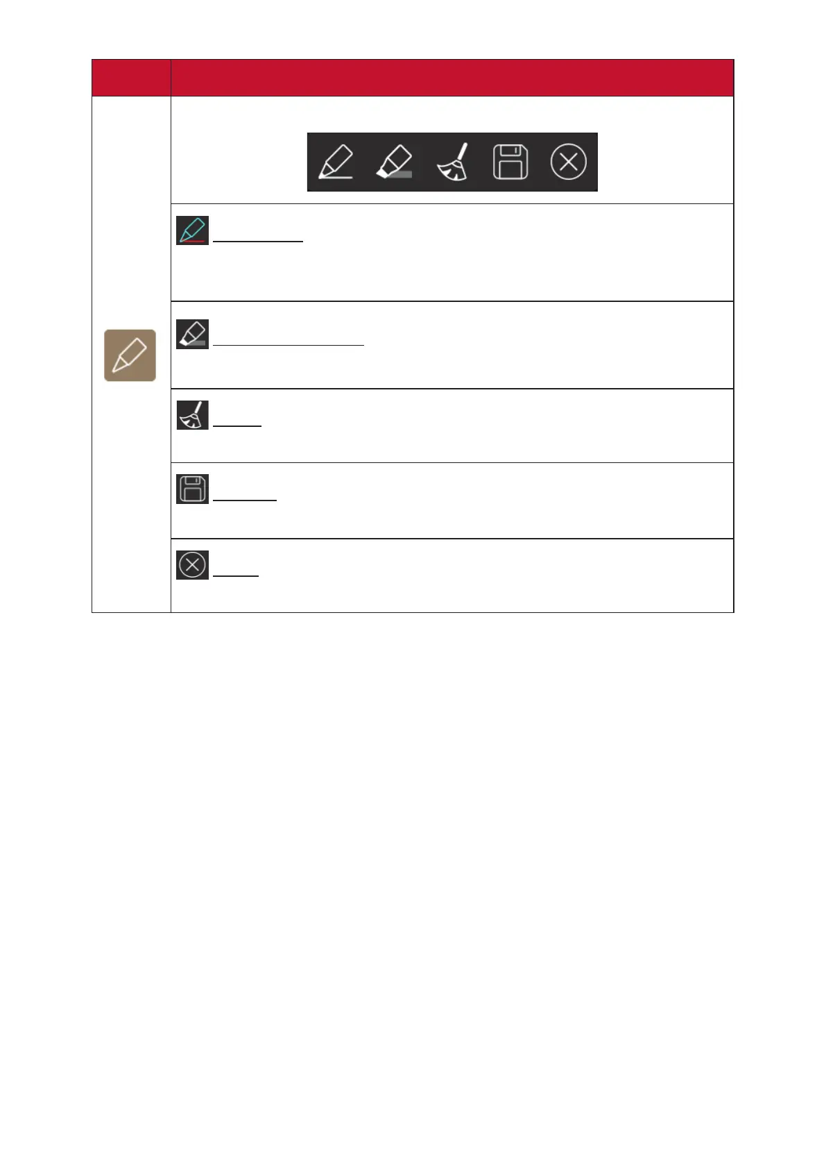 Access the pen, highlighter, clear digital ink, and save opons